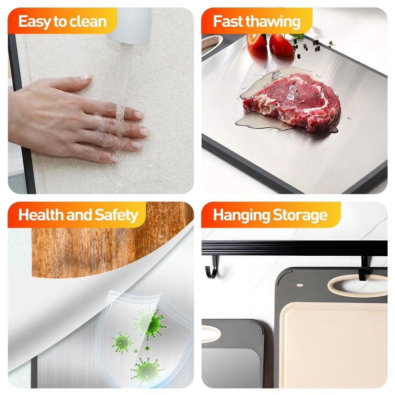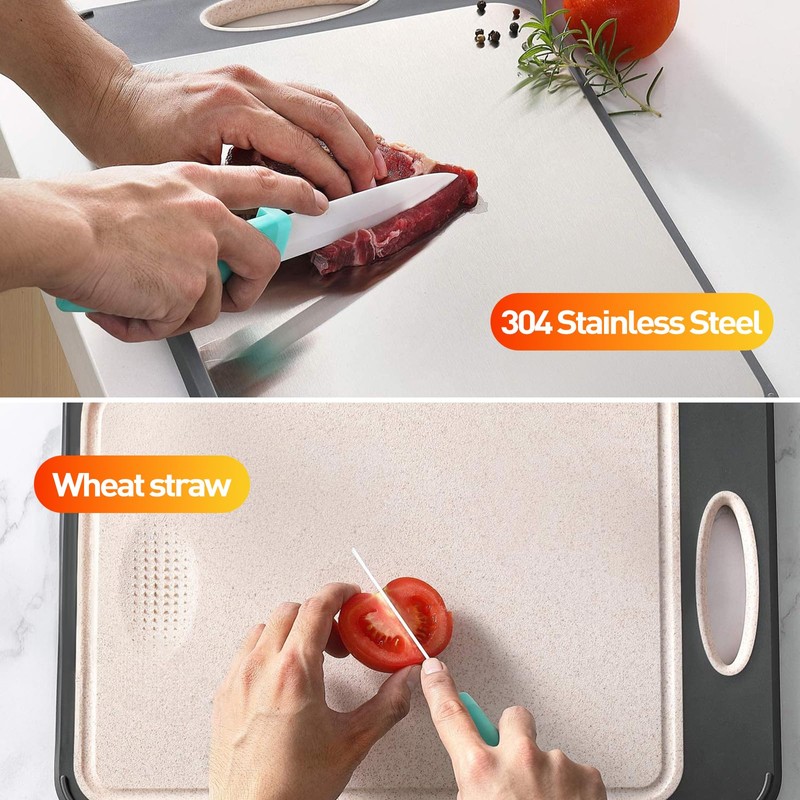 - ✅【High Quality】 Food grade Pure Titanium cutting board with E.U and F.D.A standards is durable, suitable for cutting meat And wheat straw PP chopping board features 0.2mm juice grooves to keep table clean is food grade materials, suitable for cutting fruit and vegetable
