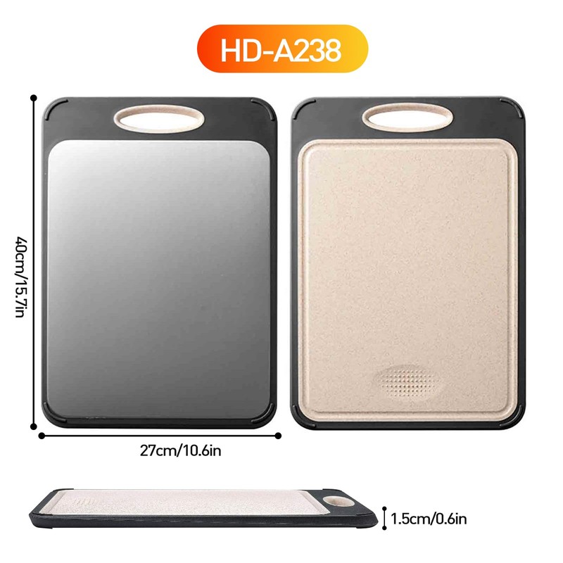 Heavy Cutting Board Double Sided, Pure Titanium Cutting Boards for Kitchen, Food-Grade Stainless Steel Cutting Board,Wheat Straw PP,Non Toxic Chopping Board for meat, Large Size15.7”×10.7”A238
