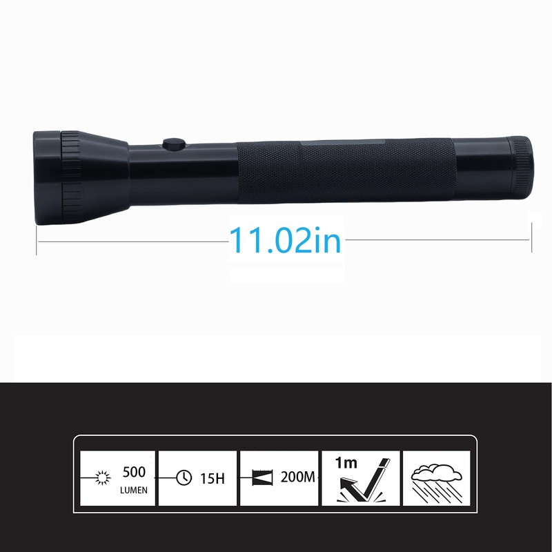 - BRIGHT:Our heavy-duty 3 D LED flashlight provides an impressive 500 lumens of bright light.Whether you are outdoors or experiencing a power outage at home, this flashlight will be your reliable companion.
