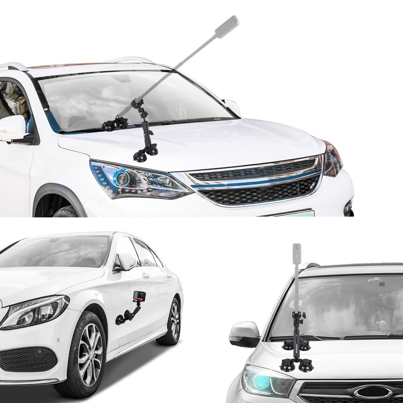- 4 Suction Cup Car Mount Kit: Elevate your footage with the Insta360 X3 Car Mount Kit, specially designed for car use. Capture unique driving perspectives without the need for a drone, securely attaching your camera with 4 powerful suction cups. Easily position your camera at various angles using the extension pole and double socket arm, whether on your hood, windshield, or side windows.