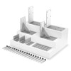 - PLATE SPECS - Contains (2) large heavy-duty 90° inside corner dock plates, (2) large heavy-duty 90° outside corner dock plates, (6) small backer plates, (3) small 90° corner brackets, along with 28 M12 carriage bolts and 28 hex nuts.