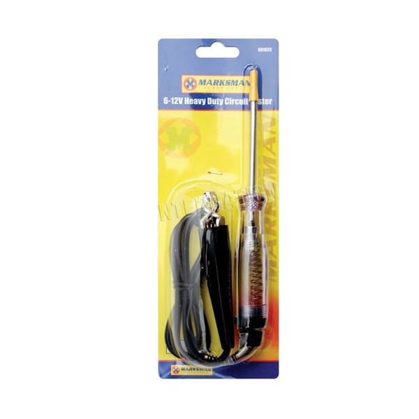 - A 6v - 12v heavy duty circuit tester complete with heavy duty insulated alligator clip and extra length ground wire.