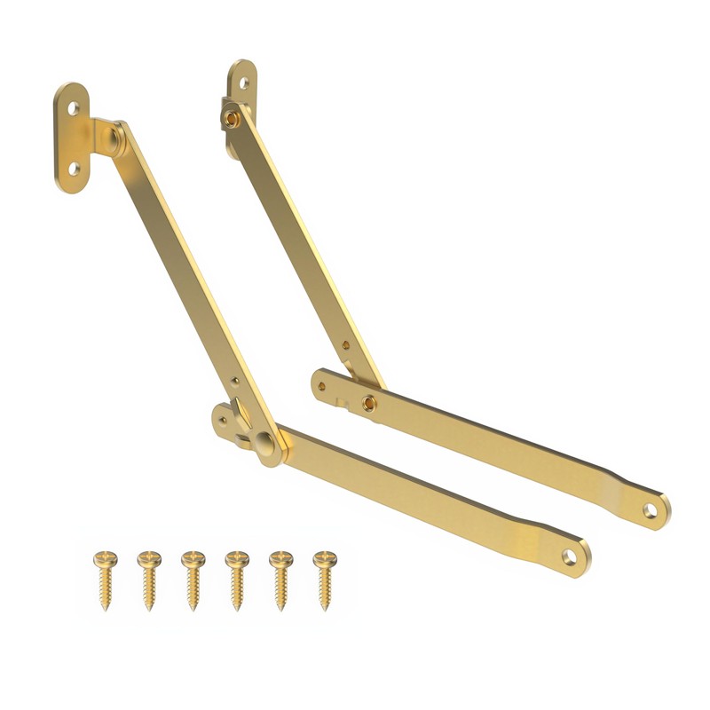 Heavy Duty Brass Plated Lid Stay - One Pair - Lid Support Hinges for Drop Front Desk, Trunk, Chest - SH2-SB