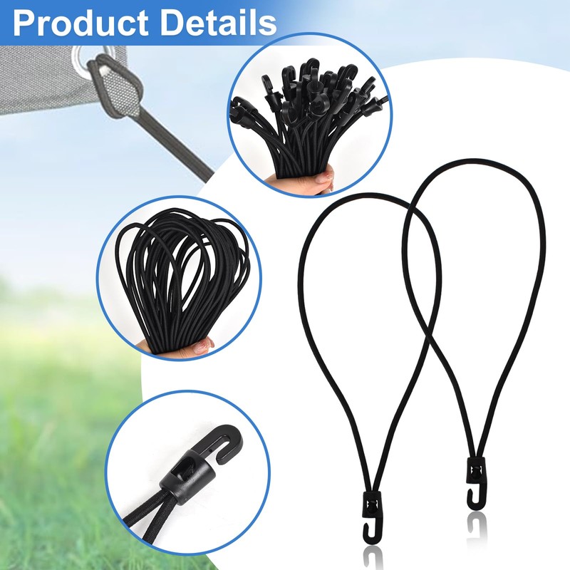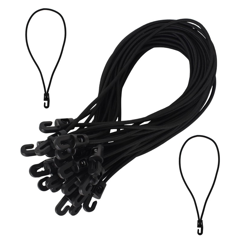 - 【💜Unique Design】Elastic bungee straps can be easily pulled through the grommet and support, then lock it on the hook. These small bungee cords with hooks can maintain long-lasting elasticity and stability in all kinds of harsh environments, sturdy and durable.
