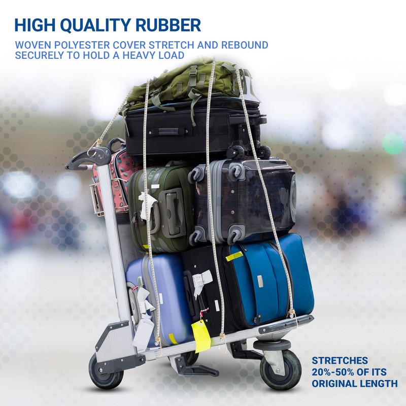 - ✓STRECHABLE➤ Durable stretchable material can stay elasticity for a long time. The bungee cord is made of premium stretchable material, providing stronger toughness and elasticity than regular rubber bungee cords. The bungee cord can bear significant pressure and could fit more kinds of needs.
