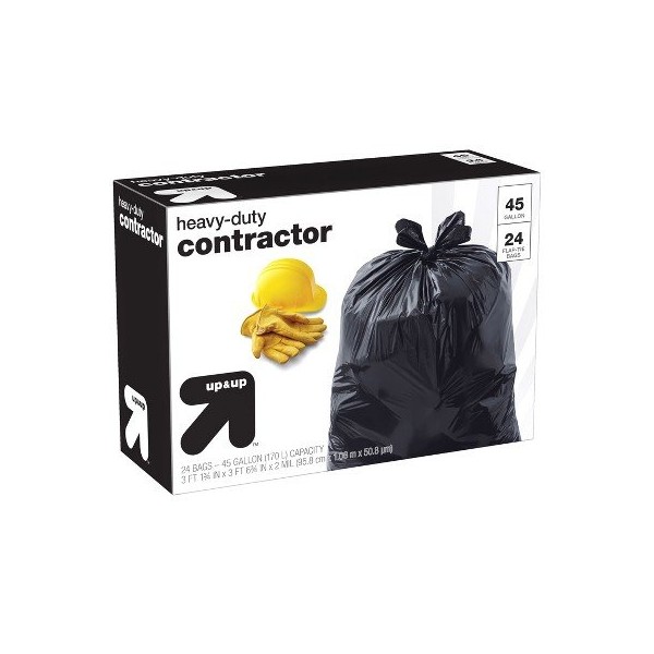 Heavy-Duty Contractor Flap-Tie Trash Bags - 45 Gallon - 24ct - up & up153; Black