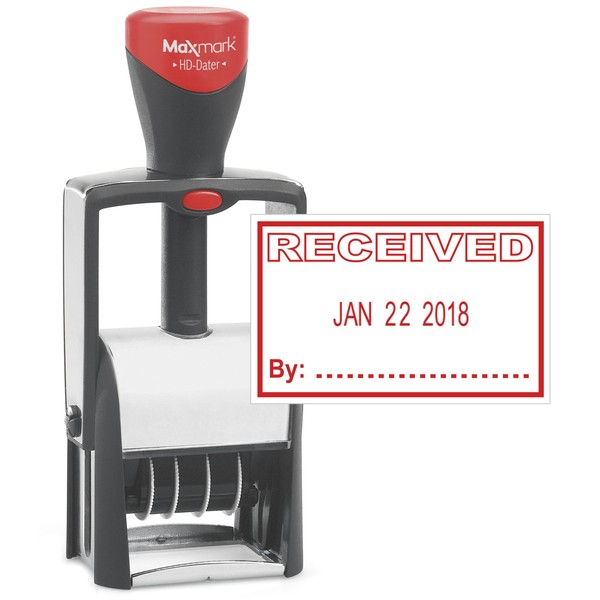 MaxMark Heavy Duty Self Inking Date Stamp with Phrase Received - Red Ink