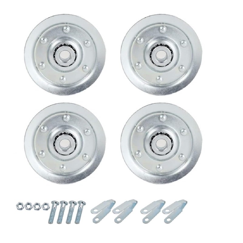 - FOUR 3" GARAGE PULLEYS: The bundle includes four 3" garage pulleys, designed to facilitate smooth and efficient movement of your garage door along the tracks.