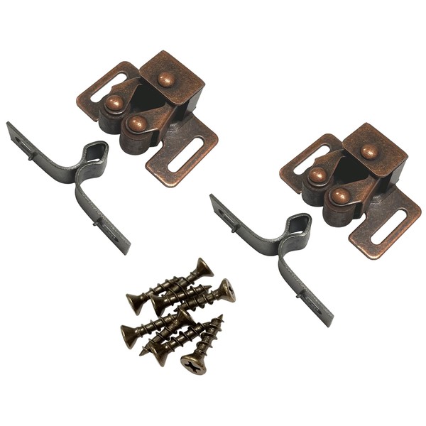 Heavy Duty Double Roller Catch, Antique Copper - 2 Sets