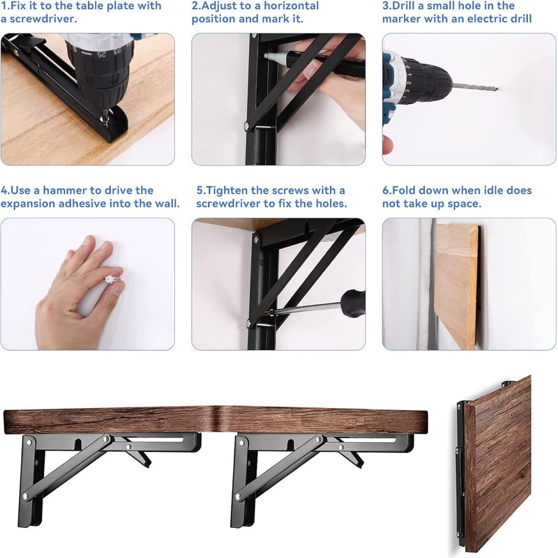 - Space-Saving Foldable Design: Easily fold the brackets flat against the wall when not in use, allowing your workbench, table, or shelf to snugly fit in tight spaces. Perfect for small rooms, garages, kitchens, and offices where space optimization is key.