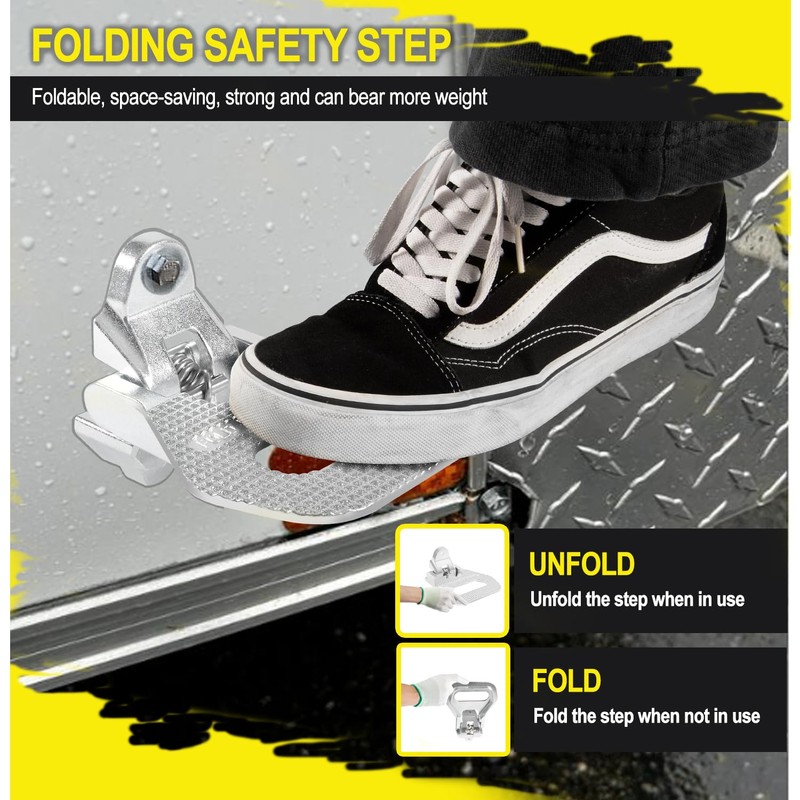 - 【Wide Application】This folding safety step is a multi-purpose step, widely installed on trucks,boats,campers,RVs and emergency vehicles to add a convenient step to your car