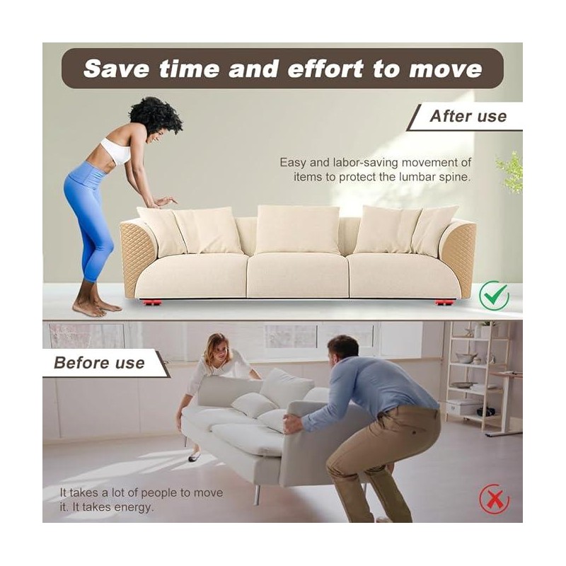 Heavy Duty Furniture Lifter with 4 Sliders for Easy Heavy Furniture Moving, Adjustable Height [Load Capacity: 600lbs Per Wheel] Red And Yellow:_Yellow