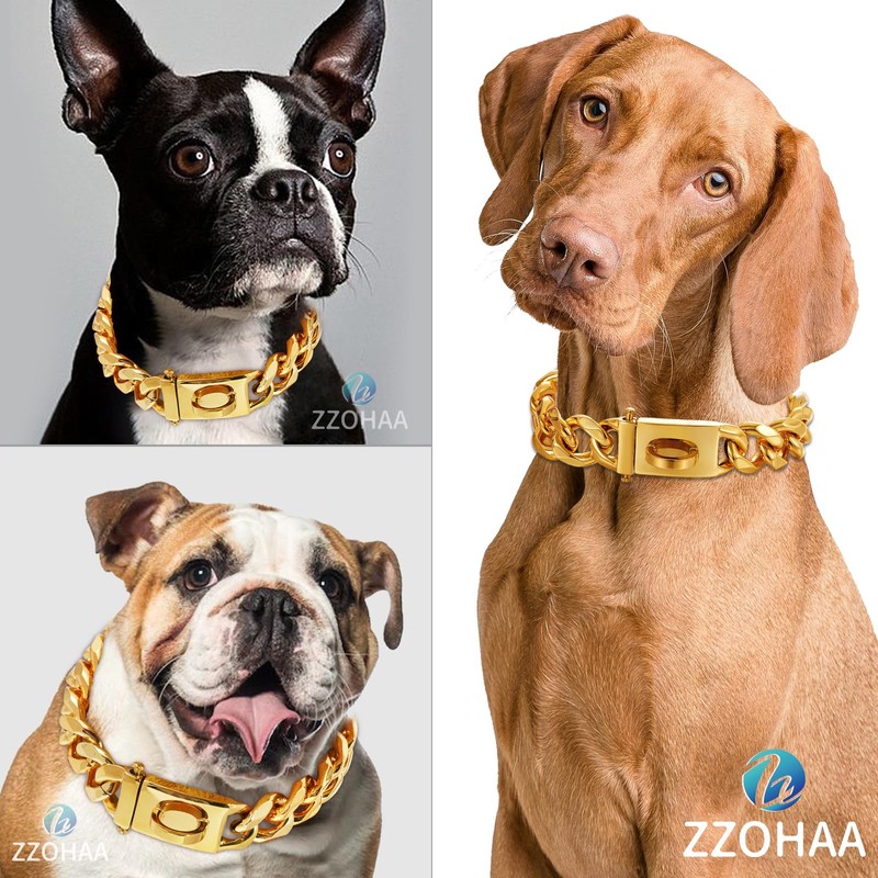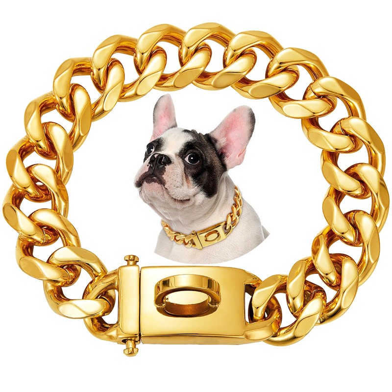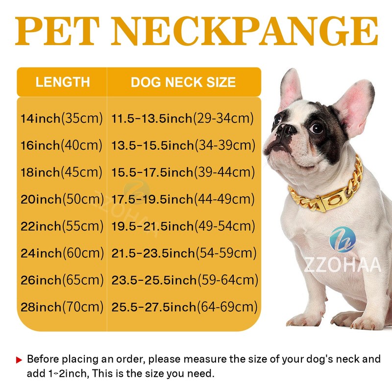 - ►More Size and Color:3 color(Gold/Silver/Rosegold/Black),Chain Wide:19mm,Collar Length:14/16/18/20/22/24/26/28inch.(Please measure the dog's neck before placing your order)