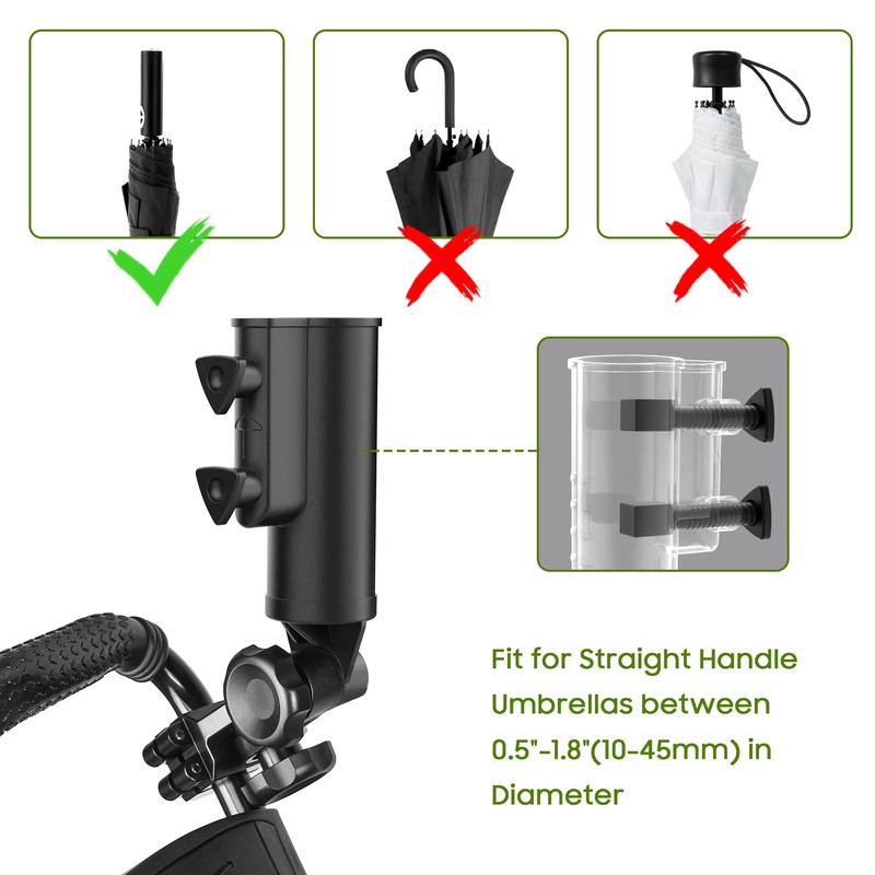 - 🌞Double knob design fixed umbrella handle, without any slippage, adjustable internal width by knob tightening. Only fit 1.8-inch max diameter round straight handle umbrellas(Not for bending, folding, irregular shape handle)