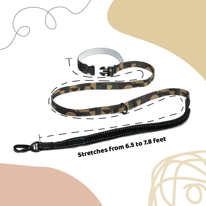 Heavy Duty Hands Free Dog Leash for Medium to Large Dogs for Comfortable Running Jogging Walking | Shock Absorbing Bungee | Soft Padded Handle | 360 Rotating Carabiner (Leash Length 6.5-7.8 ft)