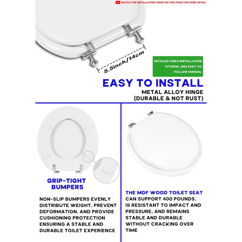 • Stable and Secure: Non-soft close metal hinges ensure a wobble-free, stable seating experience.