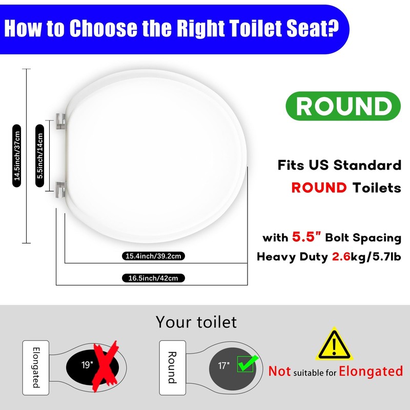 • Standard Round Design: Fits most 17-inch round toilet bowls, ensuring compatibility with a wide range of toilets.