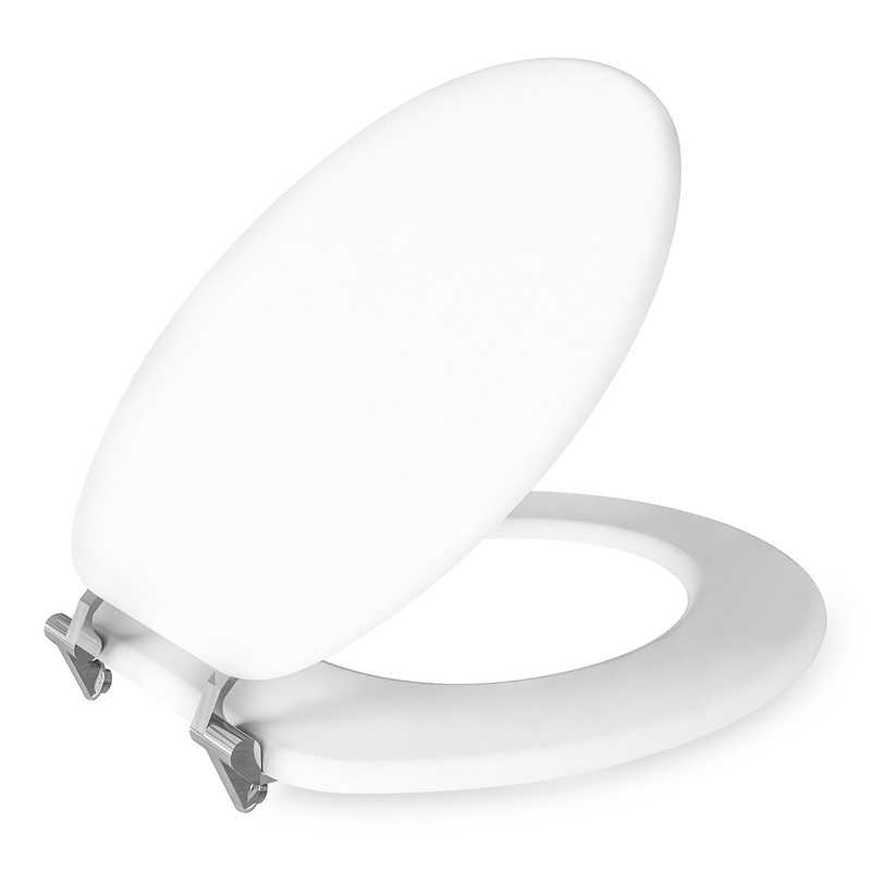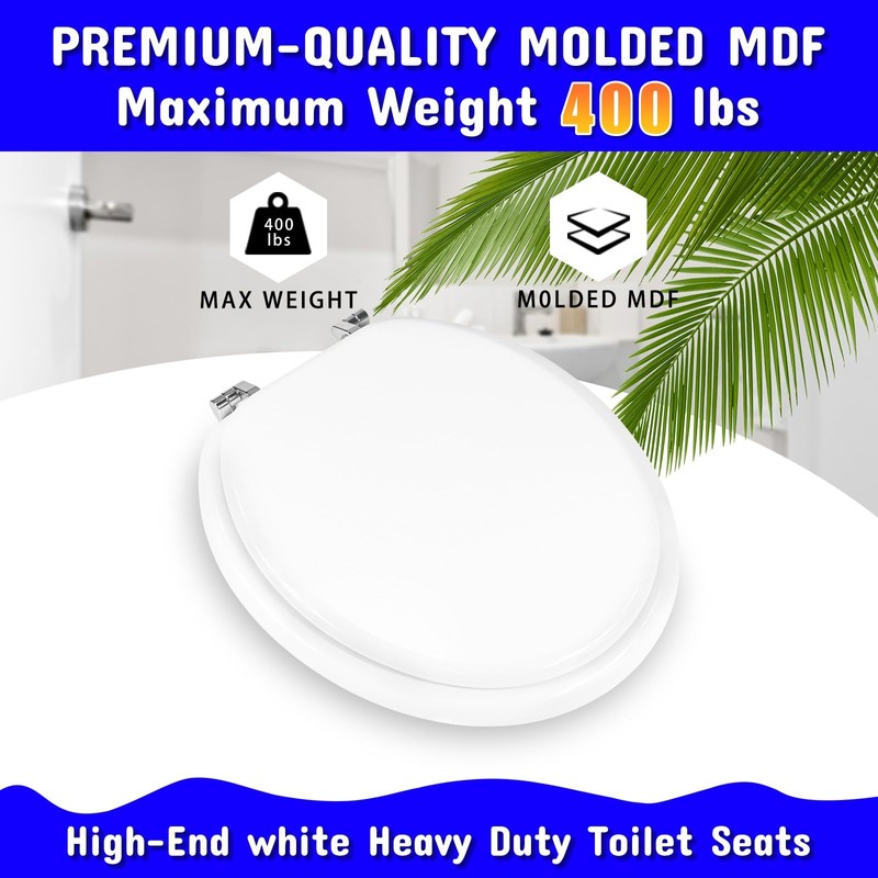 HEAVY DUTY Luxury Round Toilet Seat with Non-Soft Close Metal Hinges, Premium White Spray-Painted Finish MDF Material Seats Durable Stable Classic Design, Easy to Install Clean Standard Wooden 17 inch