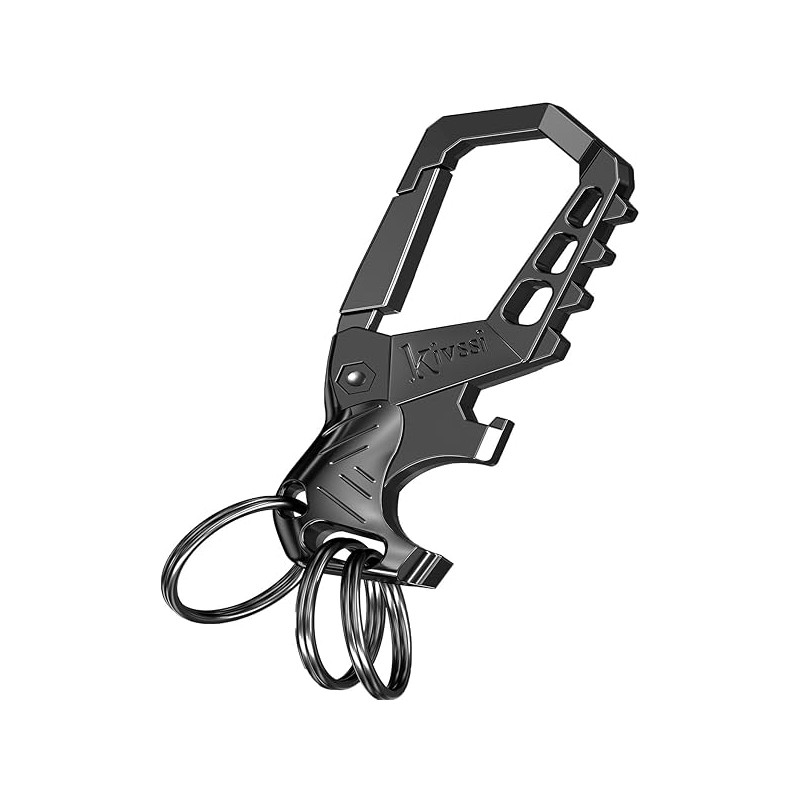 Heavy duty metal keychains, Carabiner clip Car key chains,Fashion family keychain bottle opener and 3 Key Rings suitable for men and women.(Black-1pcs)