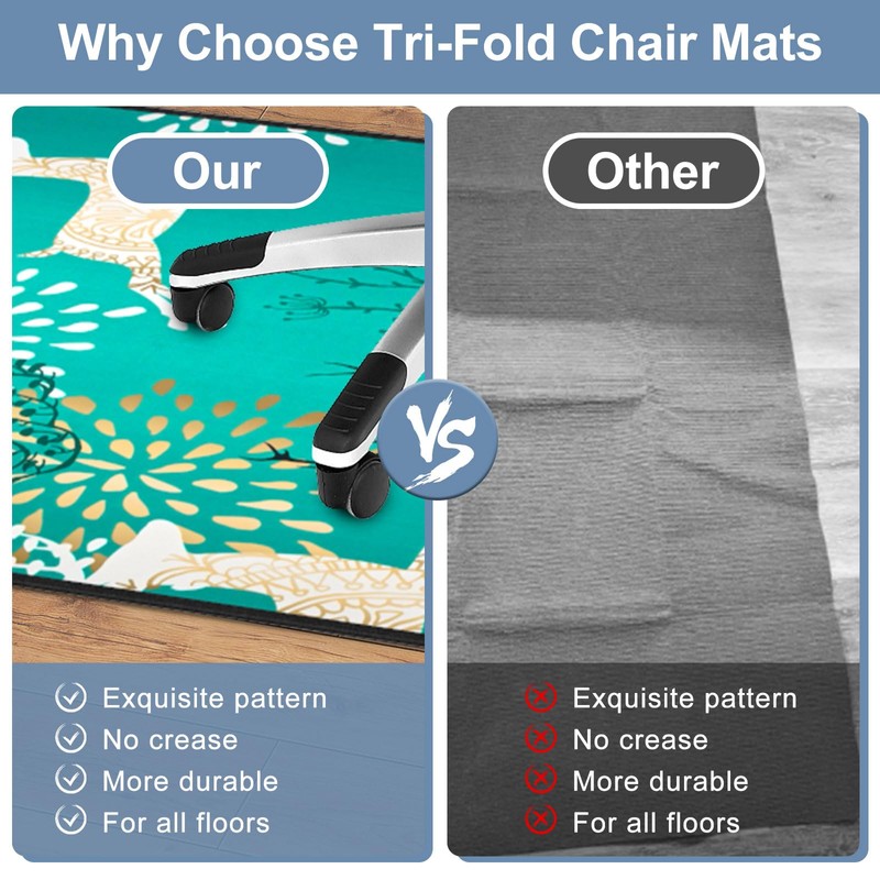 - 【Innovative Folding Process】The bottom layer of Chair mat adopts electromagnetic cutting technology, which makes it easy to store on the basis of ensuring hardness, and abandons the shortcomings of rolling and folding packaging, without curling and folding marks