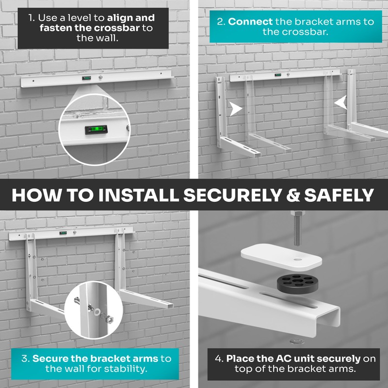 Designed for versatility and convenience, this mini split wall mounting bracket also includes anti-vibration rubber pads that reduce noise and ensure quieter operation. A built-in level guarantees accurate and even installation, making it easier to achieve the perfect setup for your system.