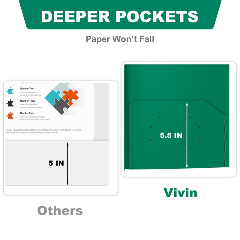 - Large capacity: 2 pockets poly folder fit 8.5 x 11 in paper, 100+ sheet capacity for each pocket, 3 prong fasteners hold 50+ sheet.