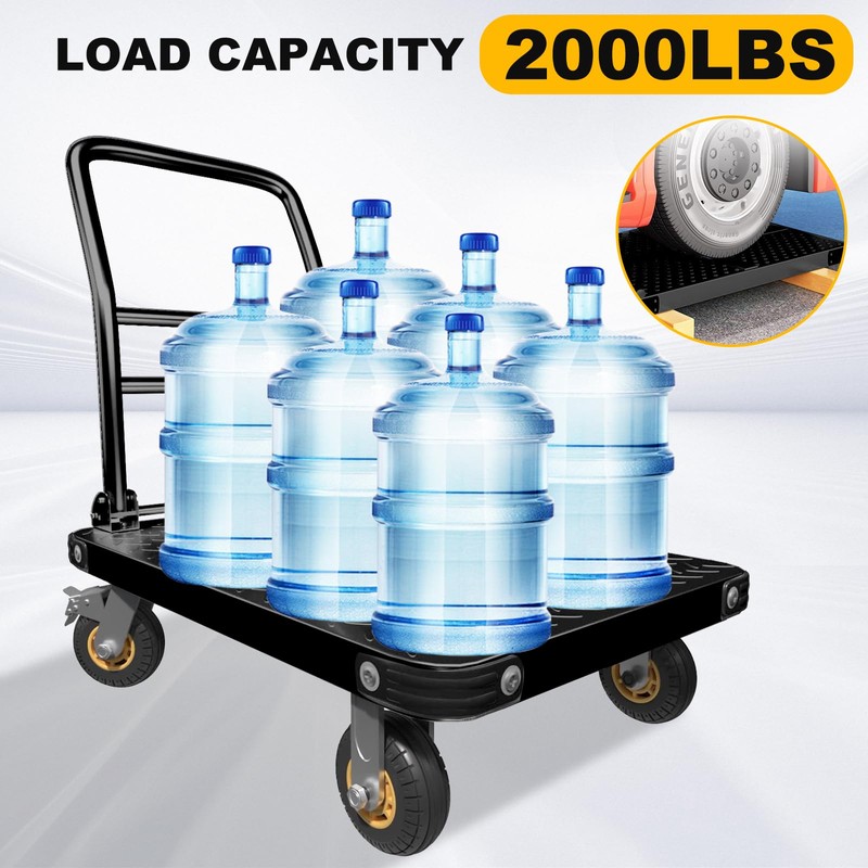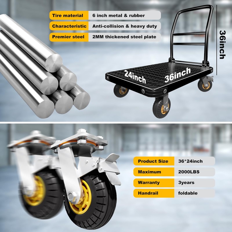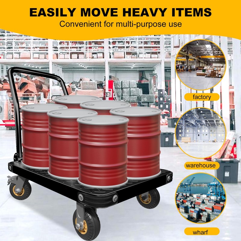 - Heavy-Duty Construction: Built with sturdy steel, this platform truck can support up to 1500-2000 lbs ,