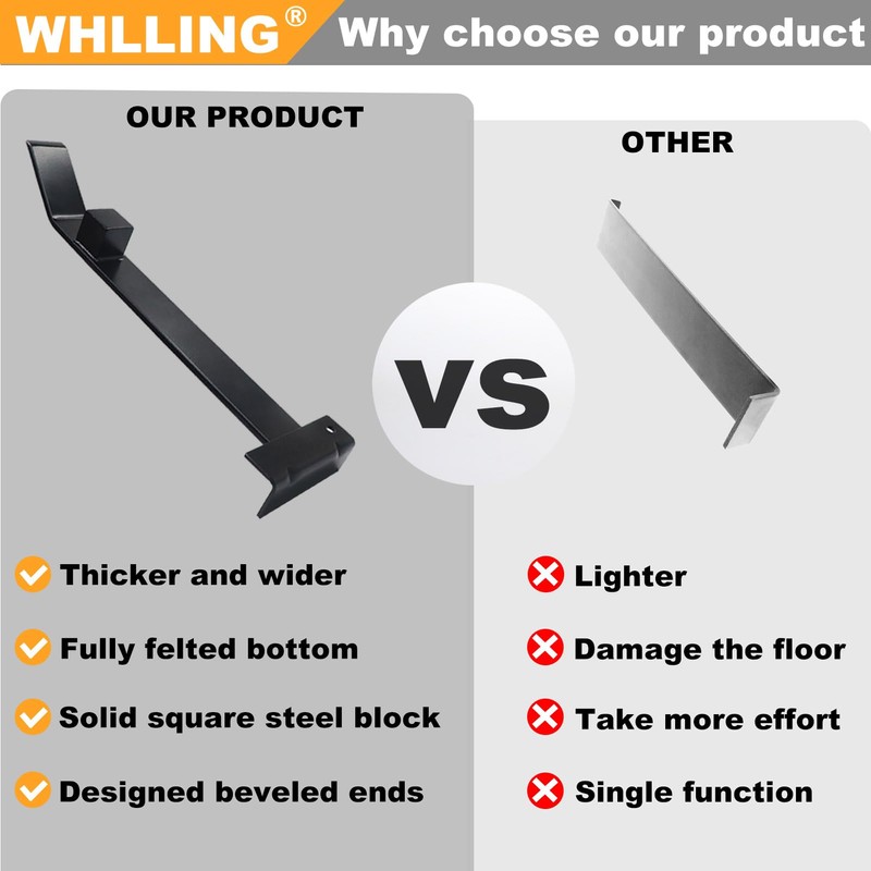 - 𝐏𝐫𝐚𝐜𝐭𝐢𝐜𝐚𝐥 𝐃𝐞𝐬𝐢𝐠𝐧: ①Solid square steel block -provides a hammer contact point that won’t absorb your strike. ②Designed beveled - specially designed beveled ends that pry into tight spaces. This pull bar allows you to work in tight spaces or close to the wall, tightening tongue-and-groove flooring and closing gaps.
