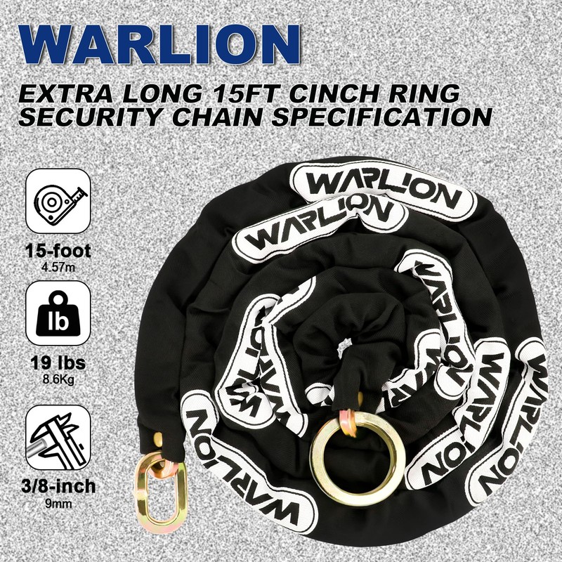 - Heavy-Duty Yet Flexible Design: The 15ft length and 3/8-inch thickness provide maximum coverage without sacrificing portability, making it ideal for securing power generators and 2-wheeled vehicles. Comes with a security chain carry bag for easy storage and transportation.