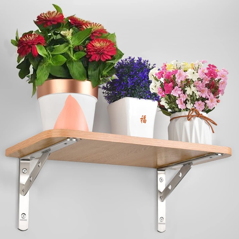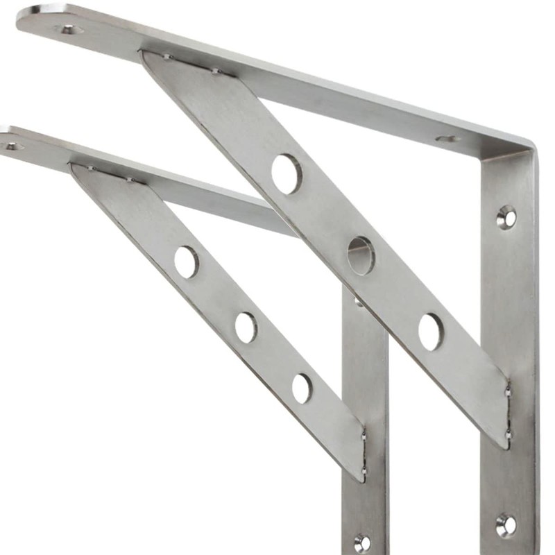 - ①Heavy Duty Stainless Steel Shelf Shelf Brackets:bracket size: 10" L x 6" H, metal size: 25mm wide x 4mm thickness, this metal shelf bracket fits 10" to 14" width lumber board perfectly.20-days return guaranteed.