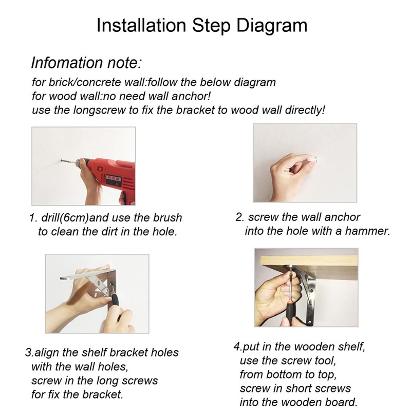 - ②Durability Wall Shelf Brackets: made of premium solid stainless steel with 4mm thickness, the l bracket are sturdy and durable and hold up to 400lbs, with brushed nickel, it can resist daily scratches, corrosion and tarnishing.