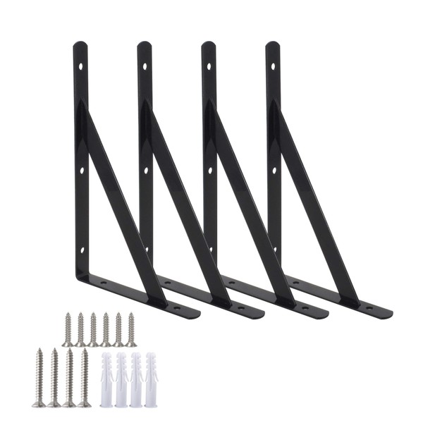Heavy Duty Shelf Brackets Triangle Shelving Brackets Right Angle Wall Mounted Shelf Supporters Black 10 Inch Set of 4