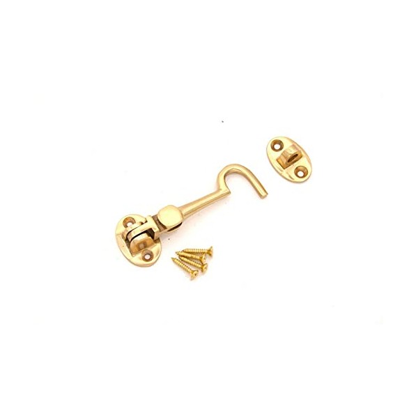 • ✅Description: This brass cabin hook is a compact and stylish hardware accessory designed to secure doors, windows, or gates in an open or closed position. Made from solid brass with a polished finish, it offers both durability and a classic appearance. Its corrosion-resistant properties make it ideal for indoor or sheltered outdoor use. It comes in two parts, a door hook and eye latch. This door latch can be fastened onto two surfaces such as a fence and door, allowing the surfaces to stay together in a locked position or to part allowing for entry. Easy to install, this 75mm hook adds a traditional touch to homes, cabins, or boats while providing reliable functionality in everyday use.