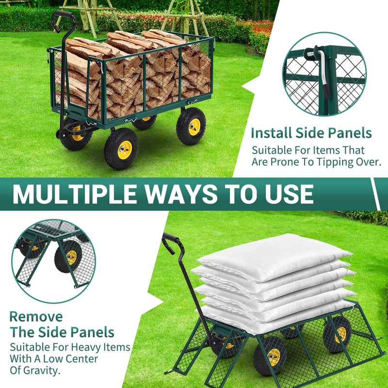 Heavy Duty Steel Garden Cart, 1100LBS Pullable Metal Garden Wagon with 10" Wheels, 180° Rotating Handle and Removable Sides for Outdoor, Farm, Yard, Beach