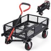 - [SPACE-SAVING FOLDABLE DESIGN]-- The steel dump wagon is designed with removable side panels on all four sides, enabling it to convert into a flatbed for transporting larger items. When the panels are reattached, it becomes ideal for carrying smaller loads such as wood or soil, making it a versatile hauling tool that accommodates your diverse needs