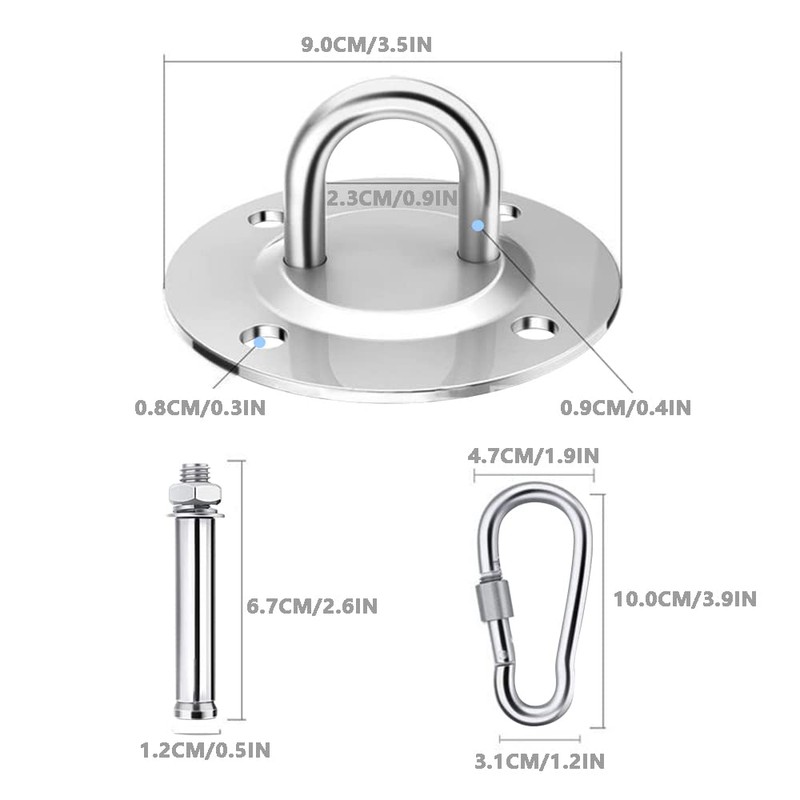 - 【Wide Application】The hook is universally suitable for indoors or outdoors, perfect for sling trainer, yoga towel, sun sail, hanging chair, hanging lamp, swing, hammock, hanging cave, hanging seat, etc..