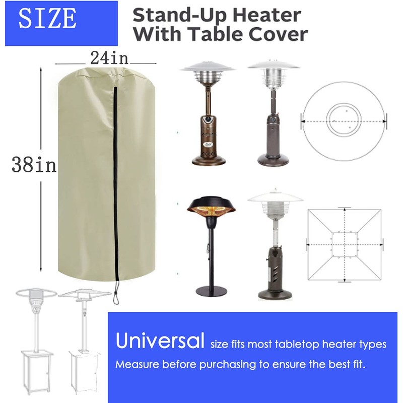 - 【☀🌤 Patio Tabletop Heater Cover⛈❄】Size 38'' H x 24'' W x 24'' D Protect your patio heater from being damaged dirty through bad weather,like wind,dust,snow storm,sunlight.Let your high-priced patio heater last for the longest time. (fits most patio Tabletop heater for outdoor. Please measure your patio heater's size carefully before purchase.)