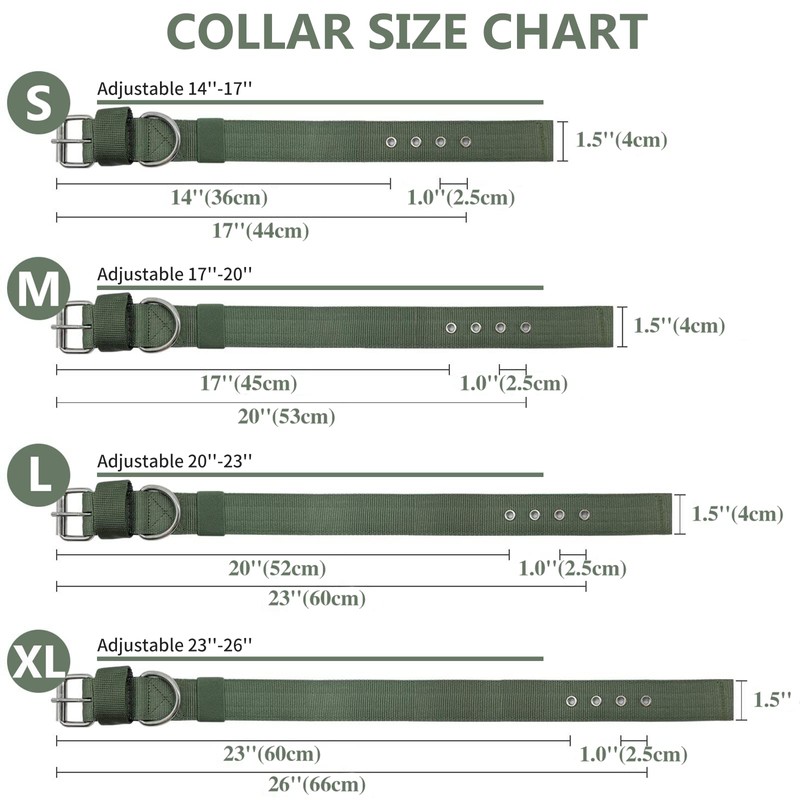 Heavy Duty Tactical Dog Collar - 1.5" Width Military Durable Thick Nylon with Adjustable Metal Buckle Working Training K9 Collar for Small Medium Large Dogs Army Green S