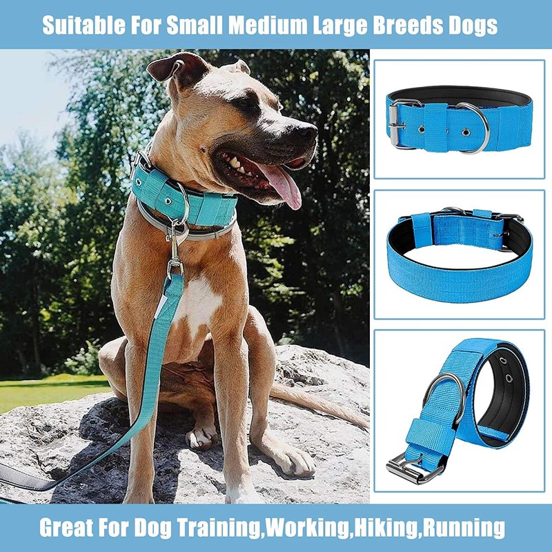 Heavy Duty Tactical Dog Collar - 1.5" Width Military Durable Thick Nylon with Adjustable Metal Buckle Working Training K9 Collar for Small Medium Large Dogs Light Blue S