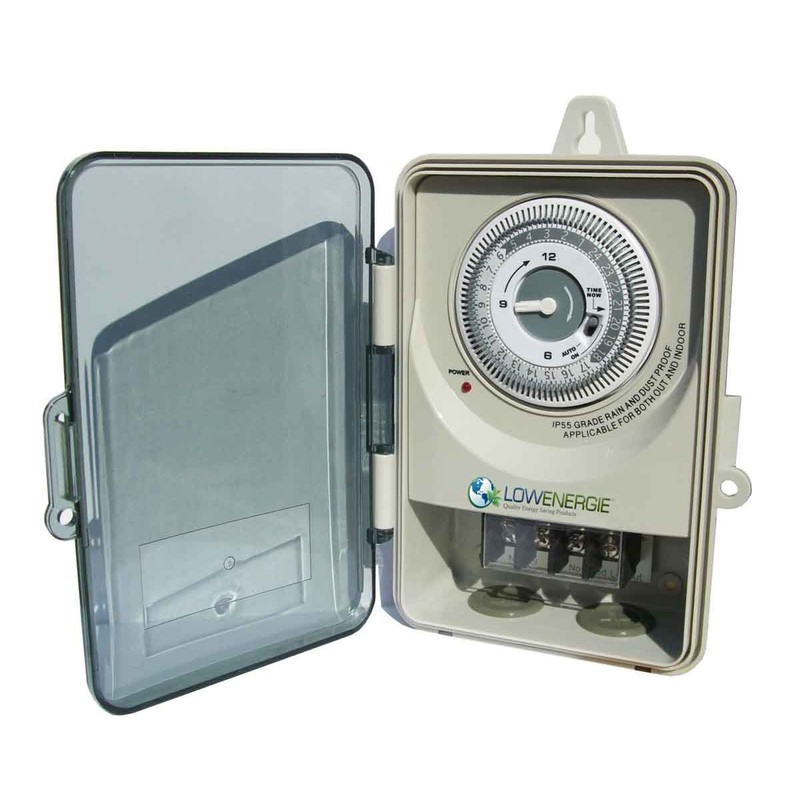 - 240V AC, 50-60Hz. Minimum switching timer 15 minutes