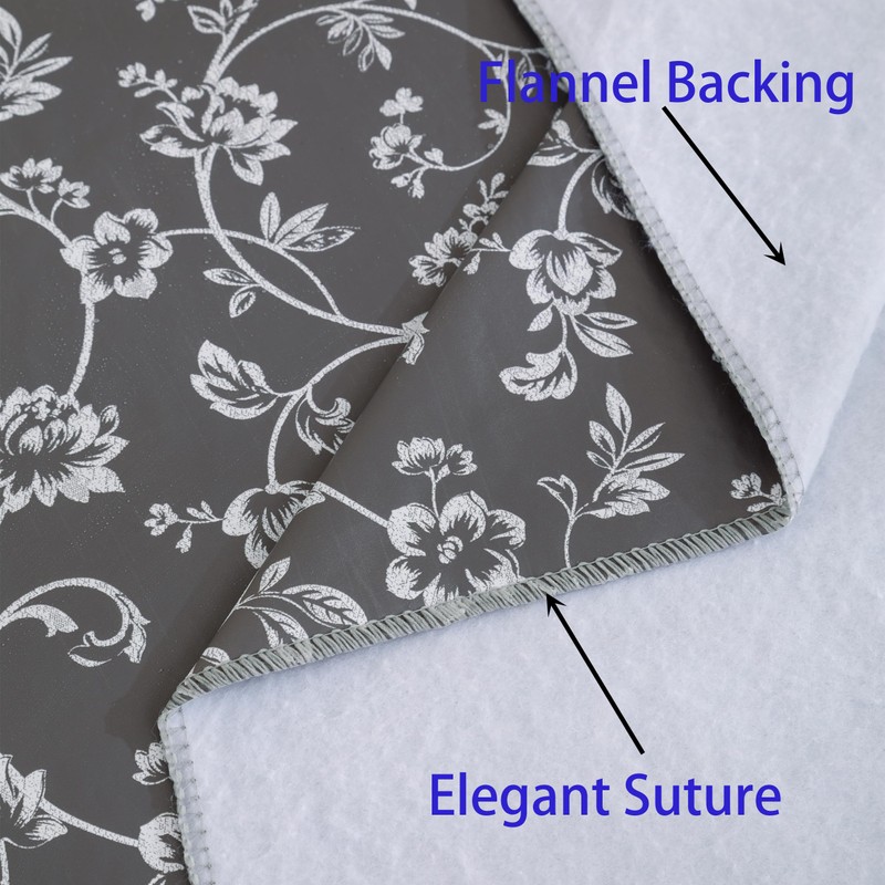 Heavy Duty Vinyl Tablecloth with Flannel Backing Waterproof Oil-Proof Plastic Table Cloth Stain-Resistant Wipeable Rectangle or Square Table Cover (Grey Floral, 52X70 Inch)