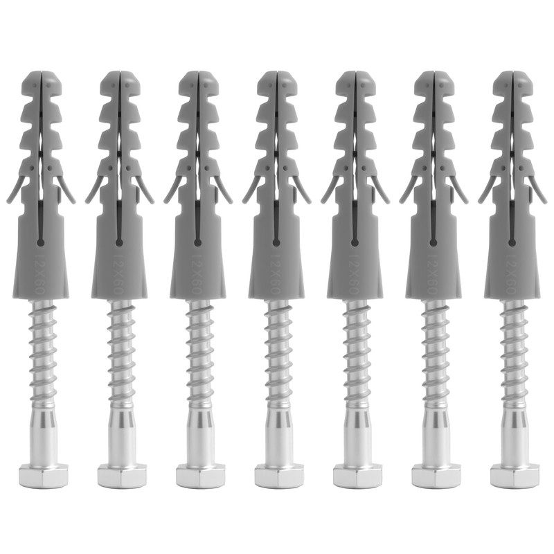 - Superior Strength and Durability: This set includes 7 high-strength 8x70mm metal screws, each paired with a 12x60mm plastic plug, engineered to provide a robust and reliable fixing solution for heavy items on brick, concrete, or stone surfaces.