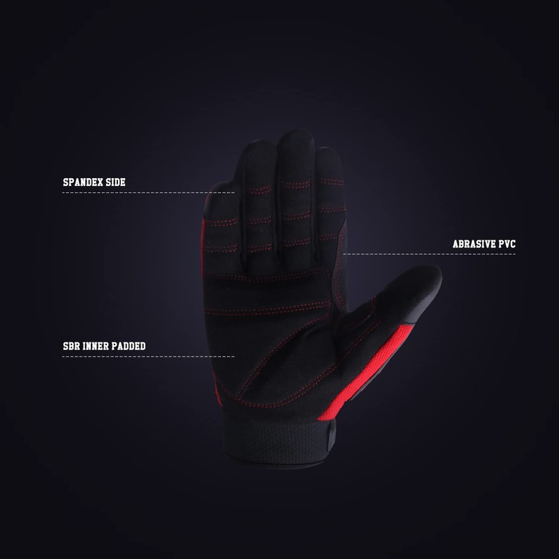 - Heavy Duty Work Gloves - Ergonomic hand protection design, Comfortable and flexible. Breathable spandex and mesh fabric, keep your hands cool. Reinforced saddle, extra protection between thumb and forefinger.