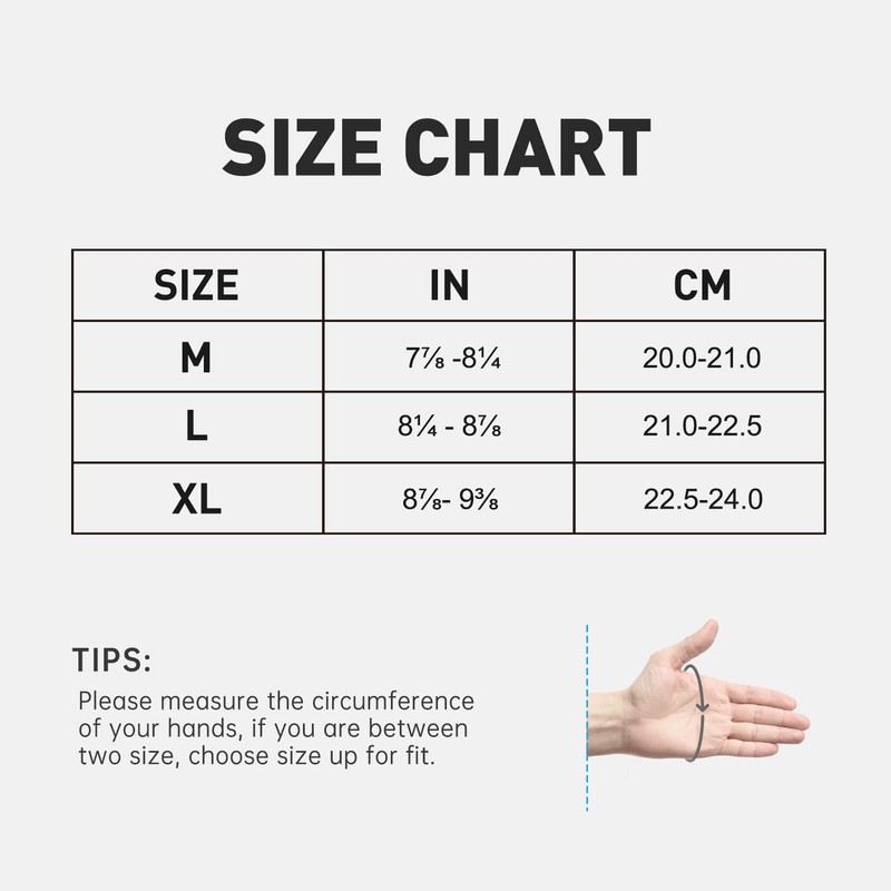 XL: 8.8-9.2”(in); 22.5-23.5 (cm)