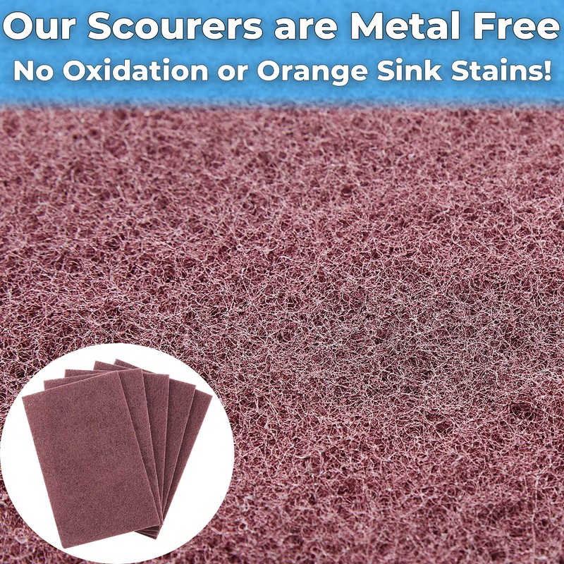 Odor-free, multipurpose scouring tool for your entire home!Our scouring pads are a truly all-purpose cleaning tool. They can be used everywhere from pots and pans in your kitchen to your outdoor railings and pool tiles. The ultra-durable scrubbing accessory doesn't rust or oxidize while outcleaning the smaller green pads you're used to using.