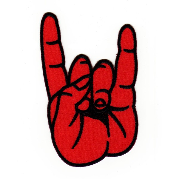 Heavy Metal Hand Red Rocker Devil Horn Iron-On Patch Size 6.2 x 10 cm