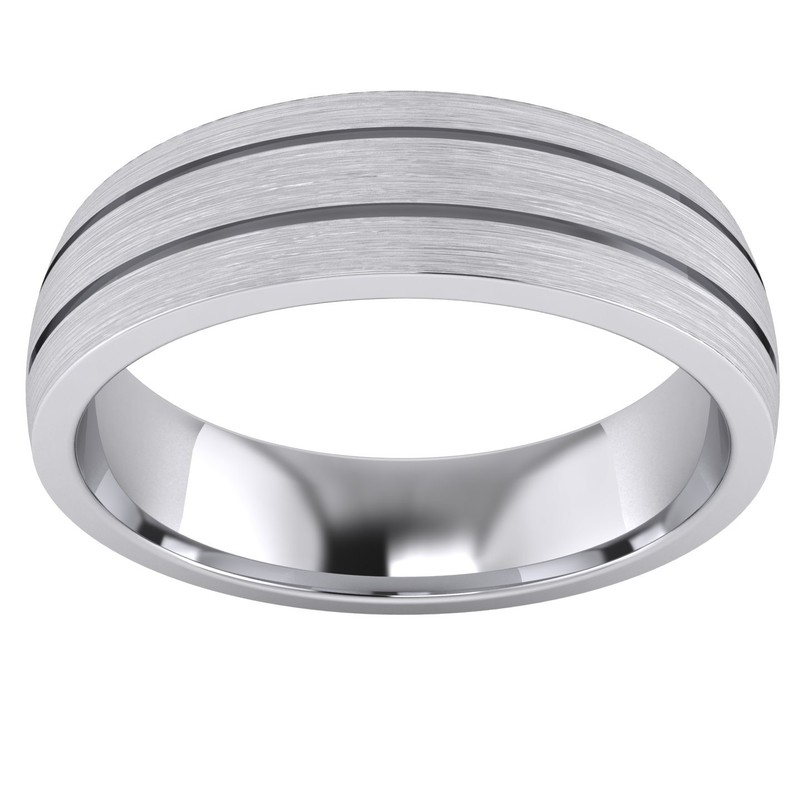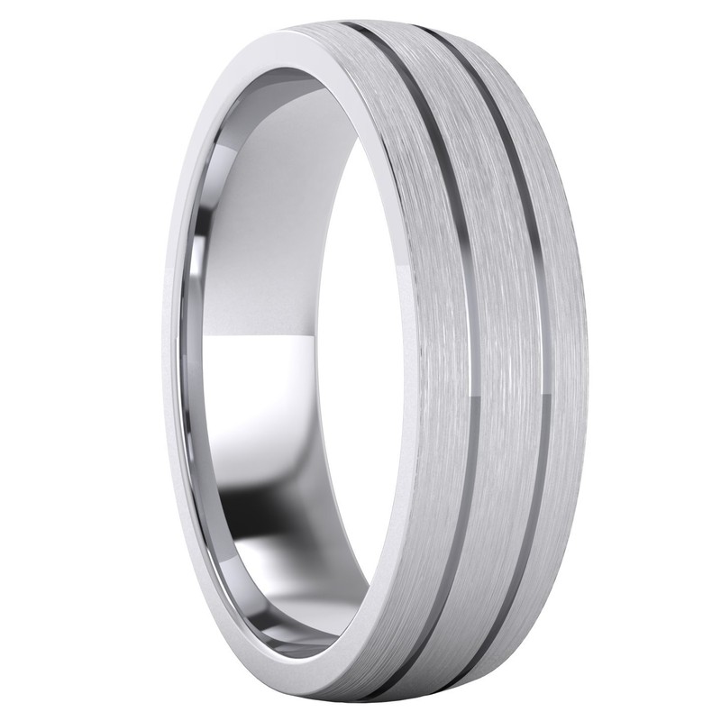 Heavy Solid Sterling Silver 6mm Unisex Wedding Band Comfort Fit Domed Ring Two Grooves Brushed Surface (Q)