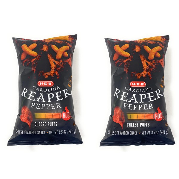 HEB Carolina Reaper Pepper Hot Cheese Puffs Chips - 2 bags