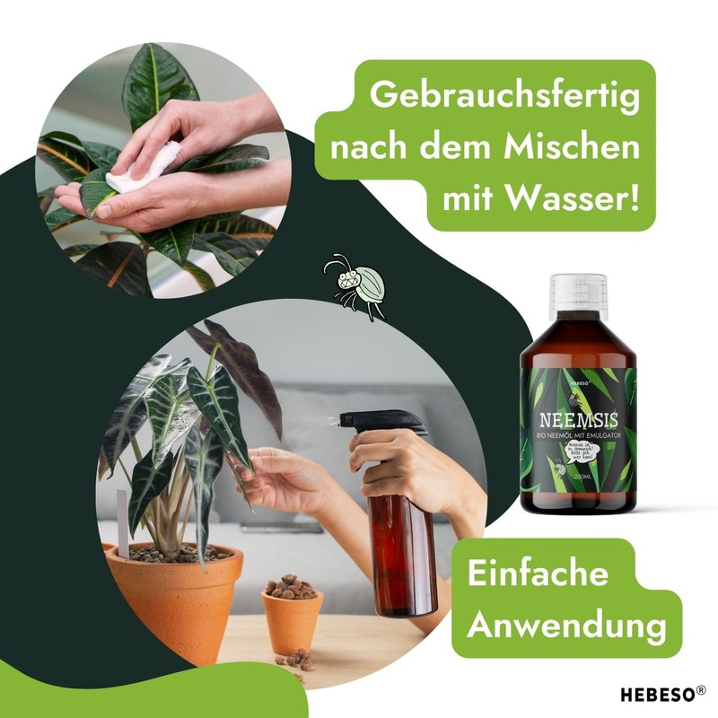 HEBESO® NEEMSIS Organic Neem Oil with Natural Emulsifier, Ready to Use, Cold Pressed, 100% Natural, Safe for the Environment, 250 ml