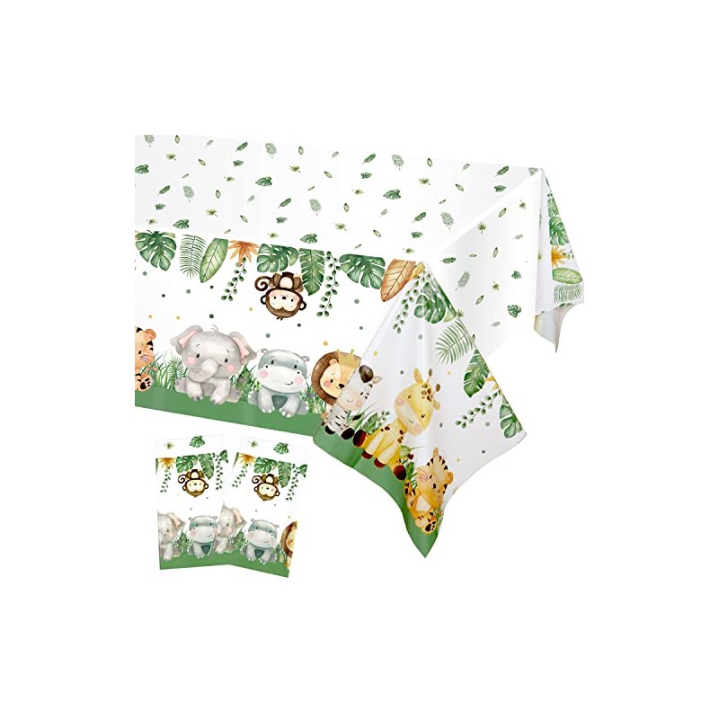 Heboland 2 Pack Jungle Safari Party Table Cloth Table Covers,274 x 137 cm Plastic Rectangular Tablecloths for Baby Shower Wild One Boys Kids Birthday Animals Party Decorations